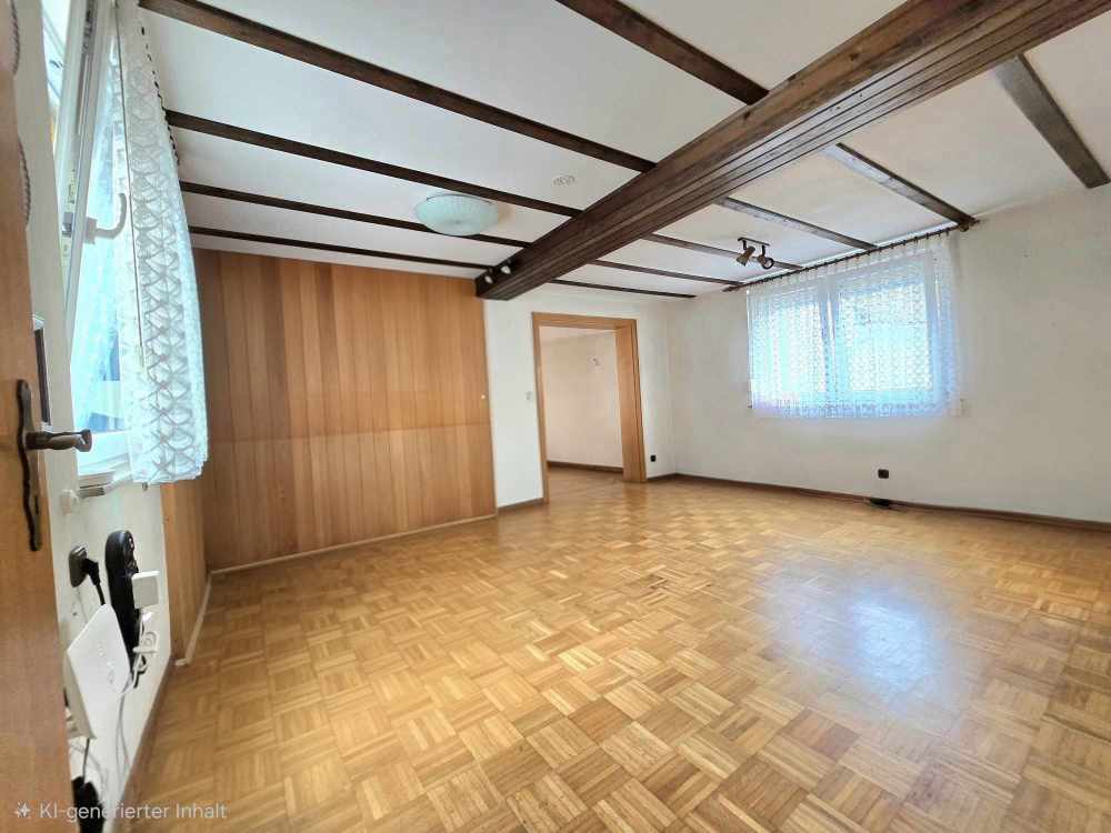 Dieses zweigeschossige Einfamilienhaus, vermutlich aus dem Jahr 1900, wurde im Jahr 1956 erweitert und verfügt über eine Wohnfläche von 138 Quadratmetern. Durch die geschickte Überlagerung zwei ästhetischer Walmdächer mit einem Satteldach entsteht eine einzigartige und skulpturale Dachgeometrie, die dem Bauwerk eine moderne Interpretation traditioneller Formen gibt und es zu einem architektonischen Blickfang macht. Die Massivbauweise des Hauses und zwei Gas Etagenöfen sorgen für eine gemütliche Atmosphäre. Der Keller mit einer Fläche von 65 Quadratmetern bietet zusätzlichen Stauraum.